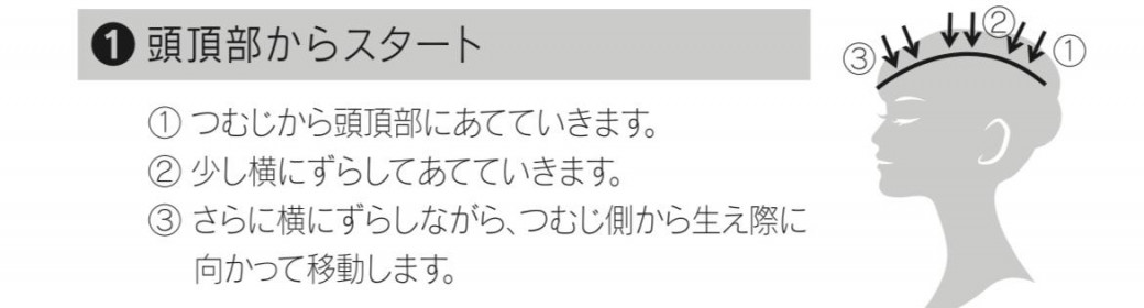 ・頭皮やお顔は下から頭頂部に向かうイメージ