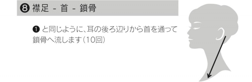 ・最後の締めは①と同じく耳後ろから鎖骨まで移動を10回